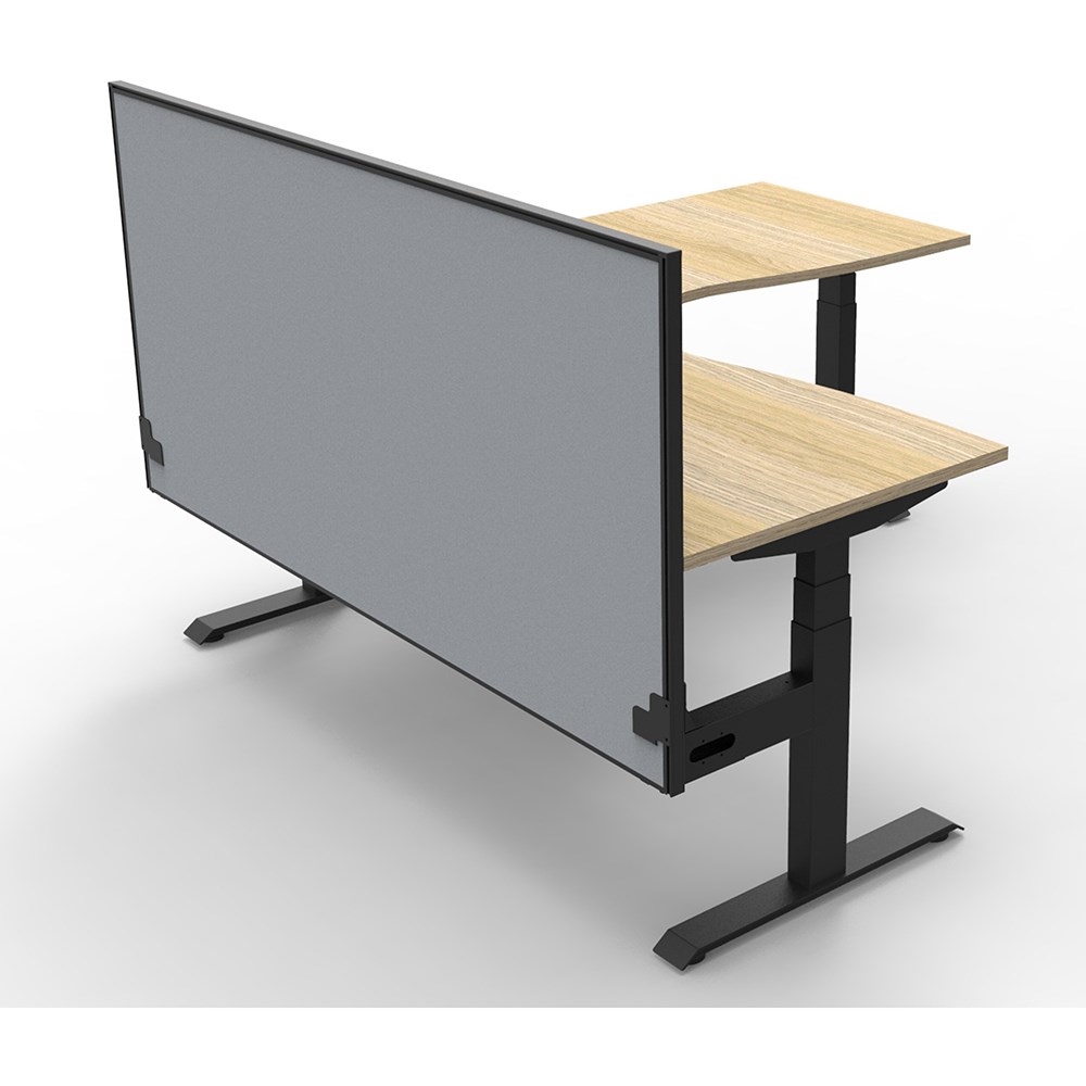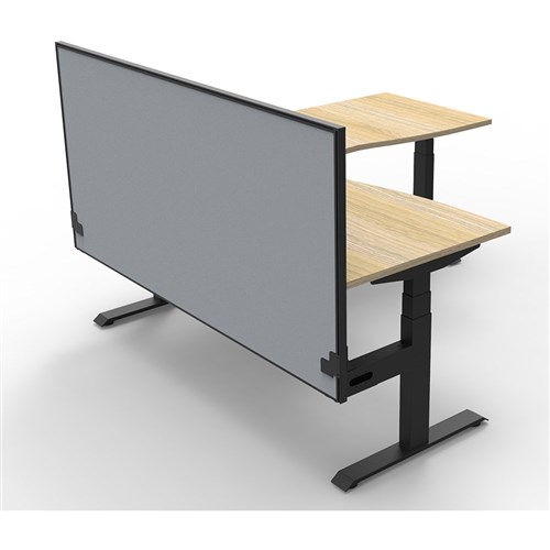 Includes pinnable privacy screen in grey fabric with matching black powder coated frame. 900mm H x 30mm T.