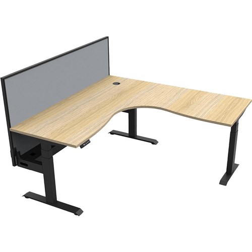 Dual Motor 3 stage motorised legs. Corner Workstation with Cable Tray and Screen.