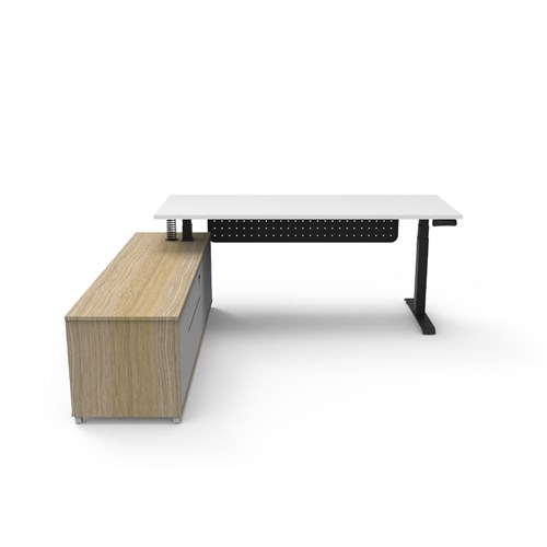 Rapidline Boost+ Executive Desk + LHS Cabinet+Panel 2020W x 1936D x 620-1270mmH Oak/Blk