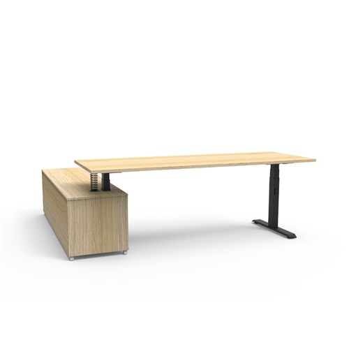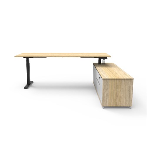 Rapidline Boost+ Executive Desk + RHS Cabinet 2270W x 1936D x 620-1270mmH Oak/Black