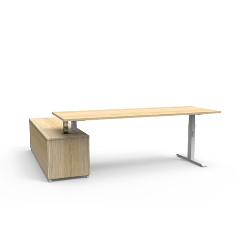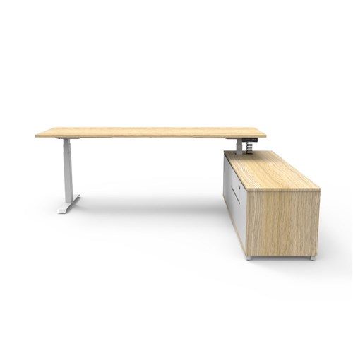 Rapidline Boost+ Executive Desk + RHS Cabinet 2270W x 1936D x 620-1270mmH Oak/White