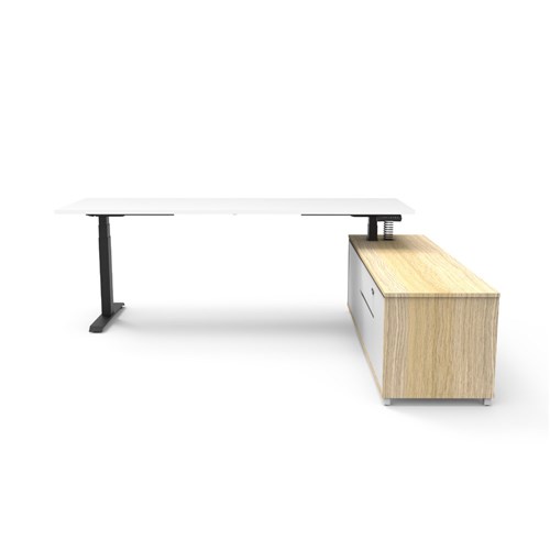 Rapidline Boost+ Executive Desk + RHS Cabinet 2270W x 1936D x 620-1270mmH Oak/Black