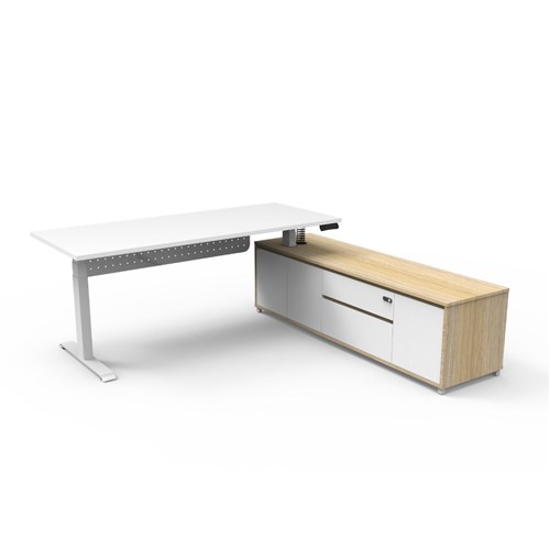 Rapidline Boost+ Executive Desk + RHS Cabinet+Panel 2020W x 1936D x 620-1270mmH Oak/Wht