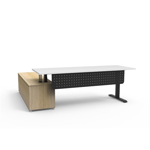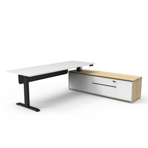 Rapidline Boost+ Executive Desk + RHS Cabinet+Panel 2270W x 1936D x 620-1270mmH Wht/Blk