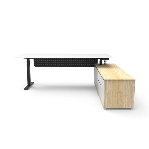 Rapidline Boost+ Executive Desk + RHS Cabinet+Panel 2270W x 1936D x 620-1270mmH Oak/Wht