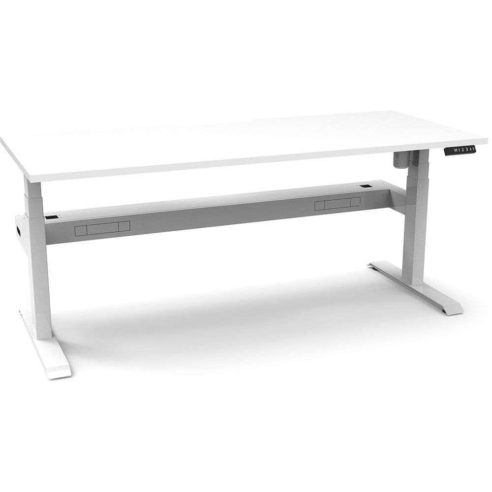 Comes with cable tray for cable management. E0 rated top. Powdercoat base.