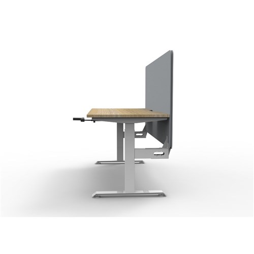Manual crank height adjustable single sided workstation with Natural Oak top and White Satin frame, Grey Eco screen.