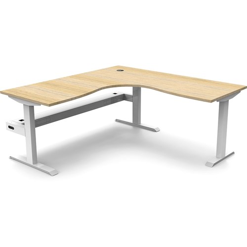 Rapidline Boost Static Corner Workstation + Tray 1500/1500W x 750D x 730mmH Oak/White