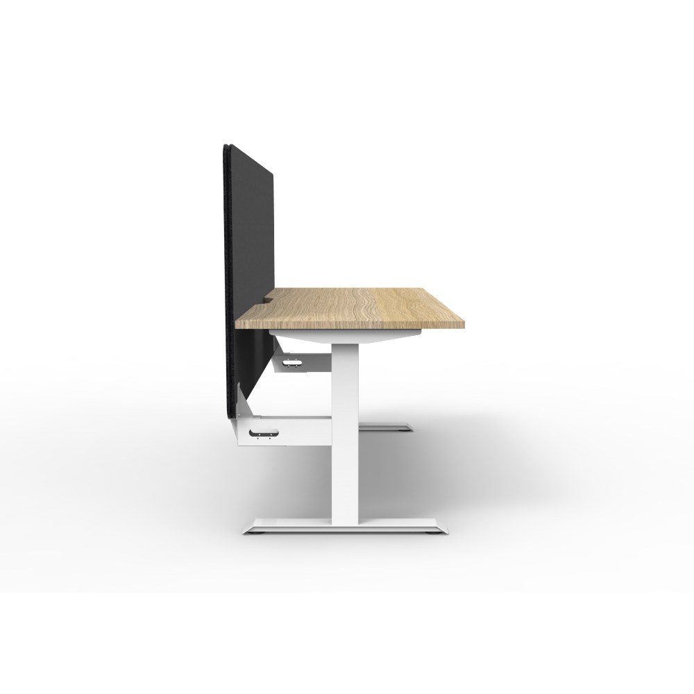 Single sided workstation with Natural Oak top and White Satin frame and Black Eco screen.