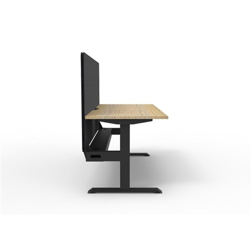 Single sided workstation with Natural Oak top and Black Satin frame, Black Eco screen and cable tray.
