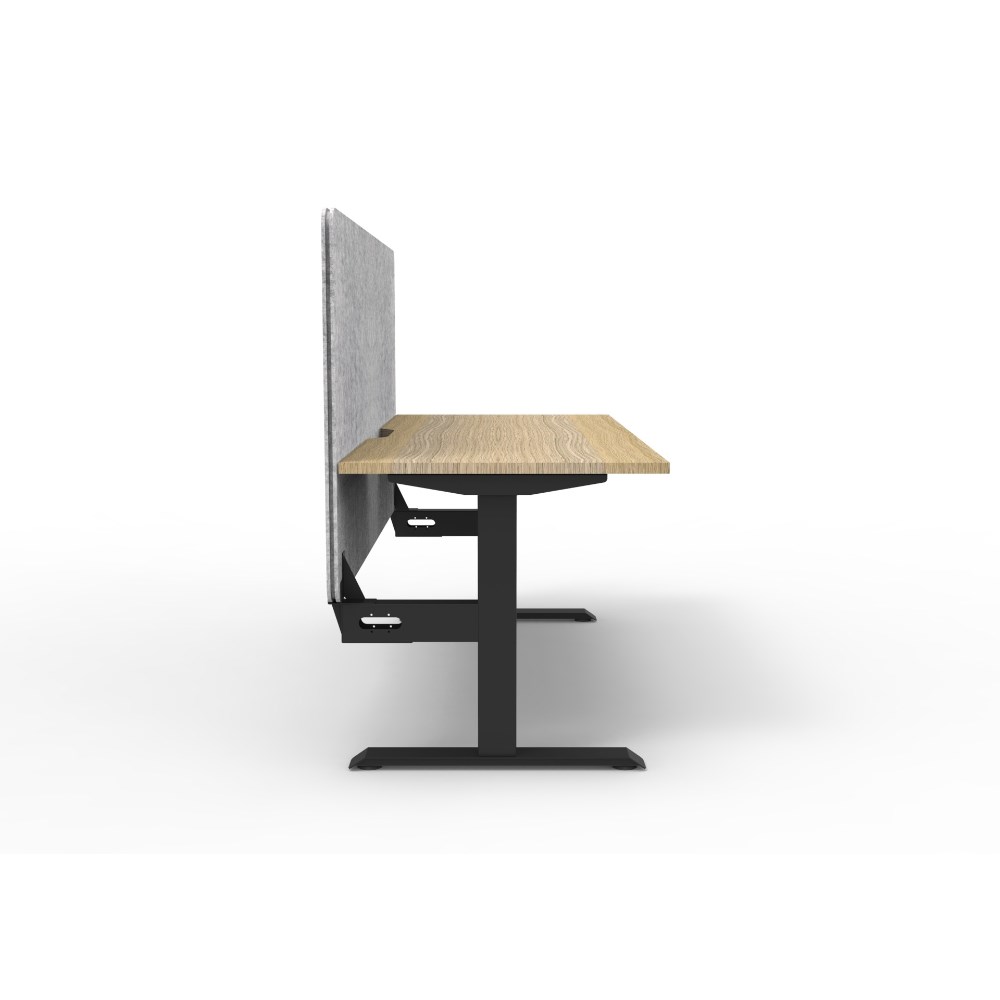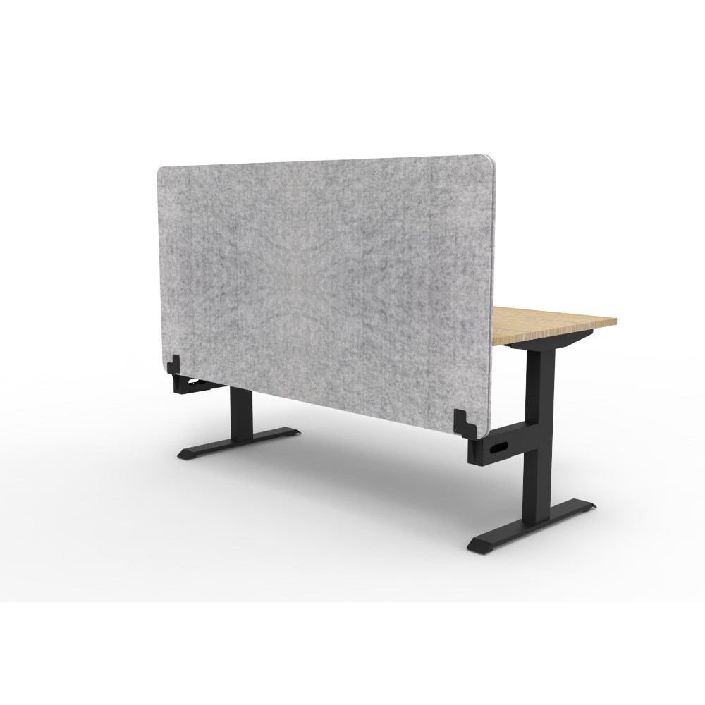 Single sided workstation with Natural Oak top and Black Satin frame and Grey Eco screen.
