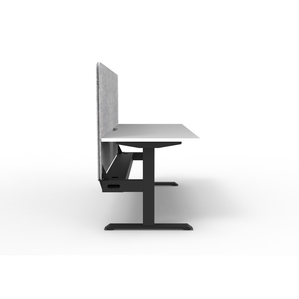 Single sided workstation with White top and Black Satin frame, Grey Eco screen and cable tray.
