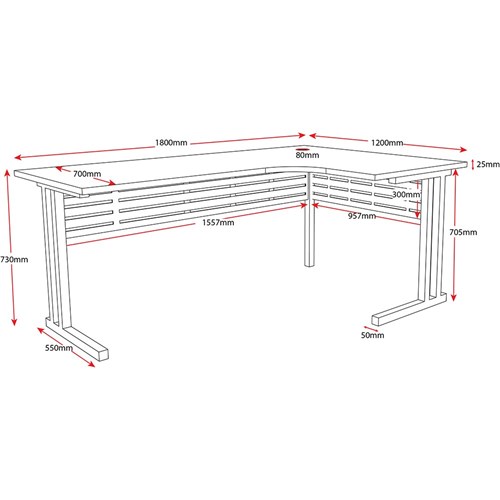 Rapidline C Leg Corner Workstation 1800/1200W x 700D x 730mmH Natural White /Silver