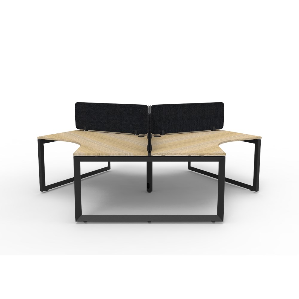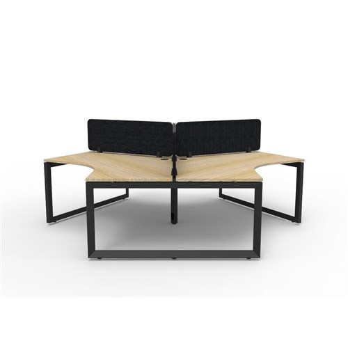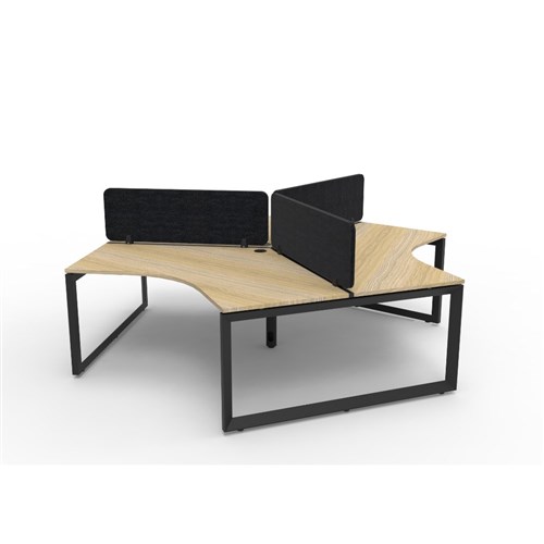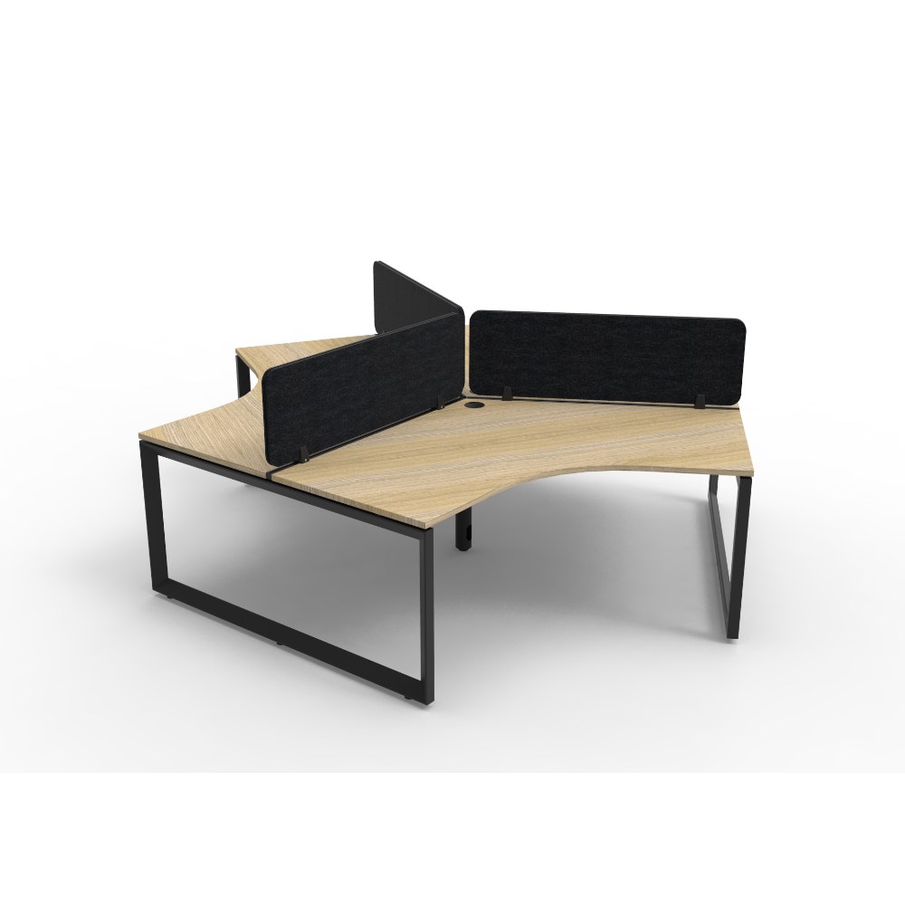 3 person 120 degree workstation with Natural Oak top and Black Satin frame, Black Eco screen.