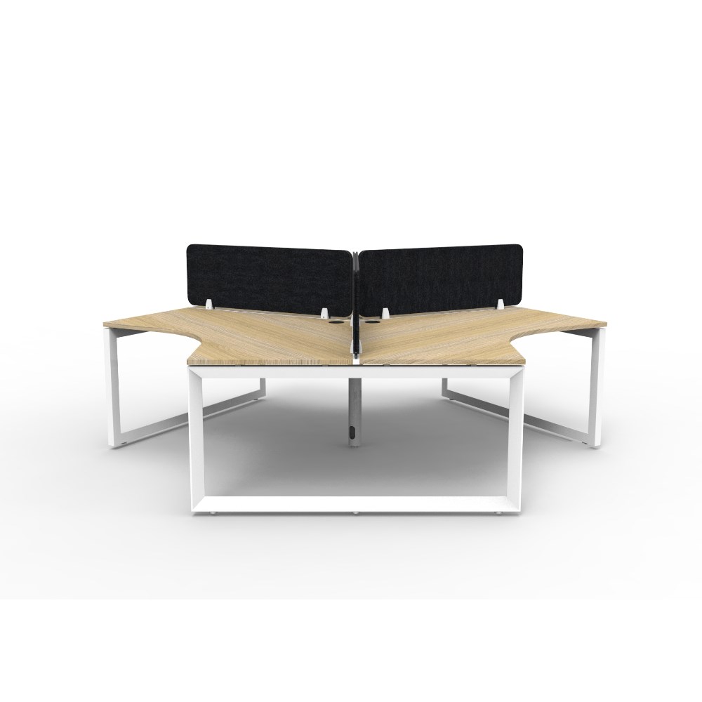 3 person 120 degree workstation with Natural Oak top and White Satin frame, Black Eco screen.