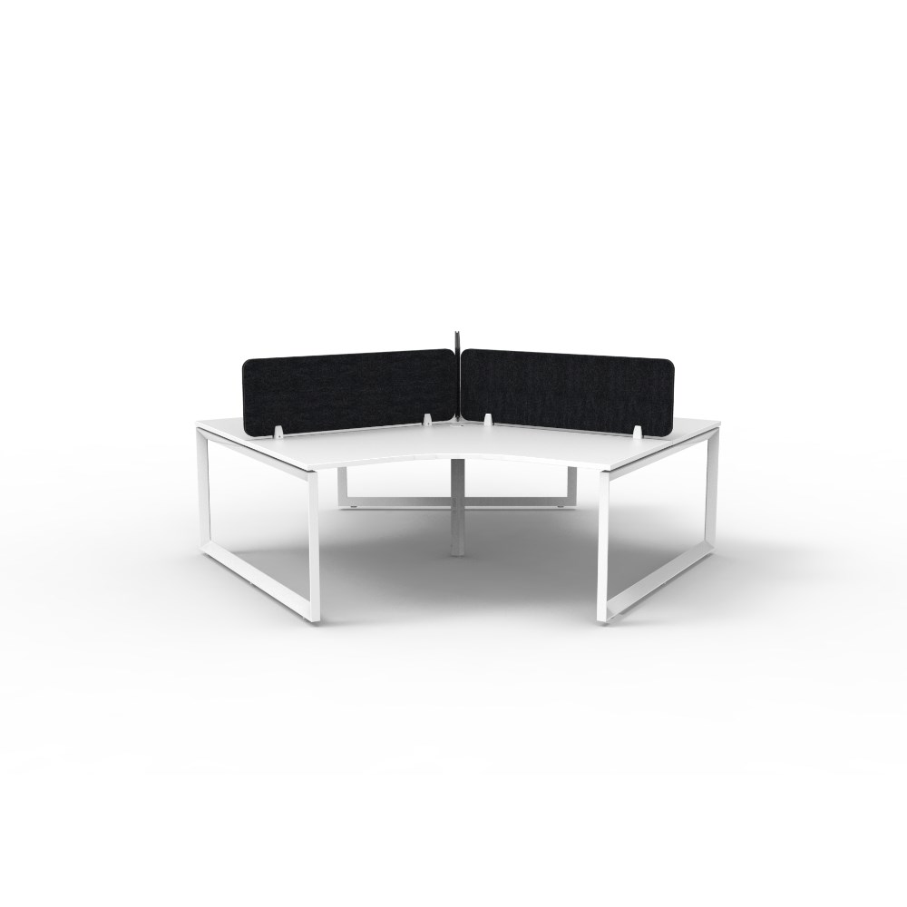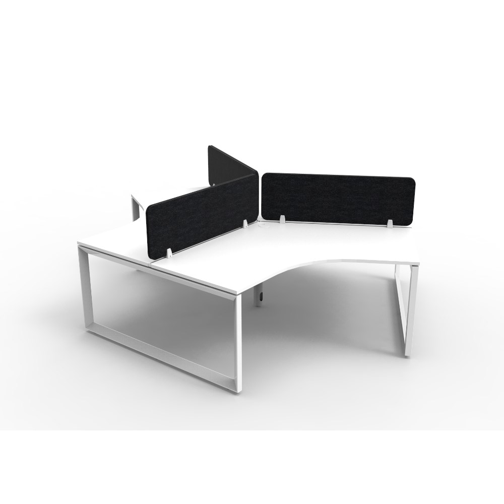 3 person 120 degree workstation with White top and White Satin frame, Black Eco screen.