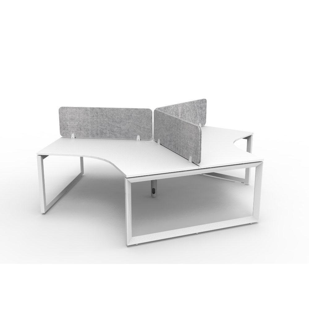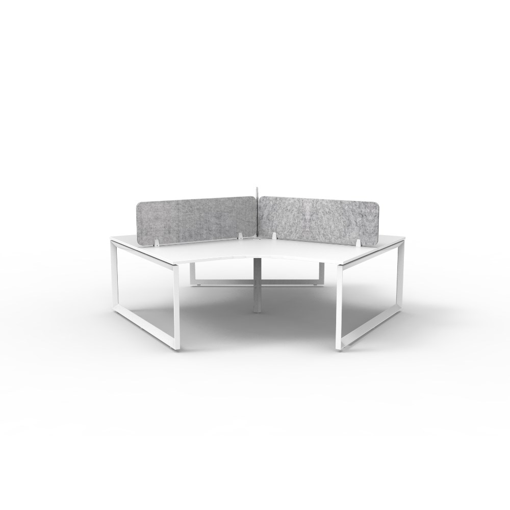 3 person 120 degree workstation with White top and White Satin frame, Grey Eco screen.