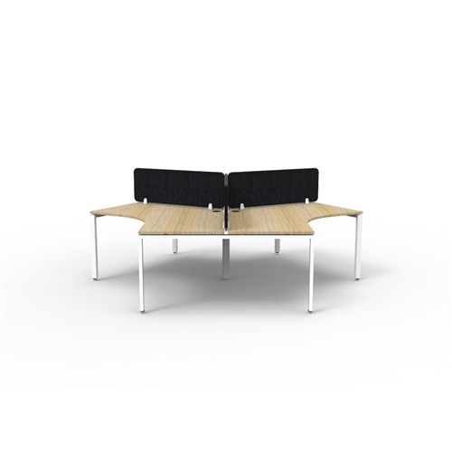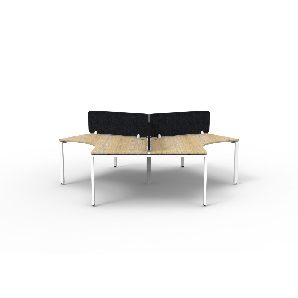 3 person 120 degree workstation with Natural Oak top and White Satin frame, Black Eco screen.