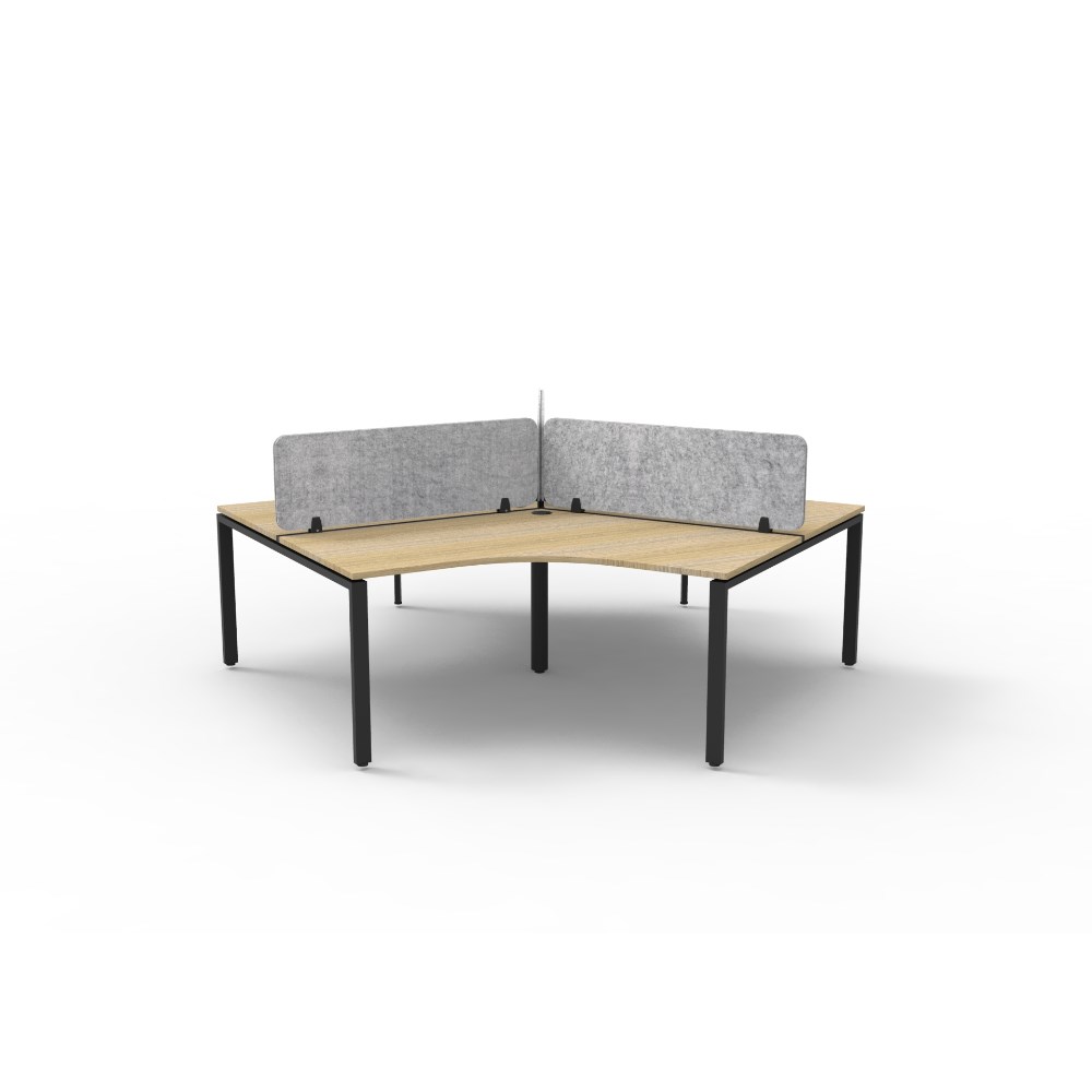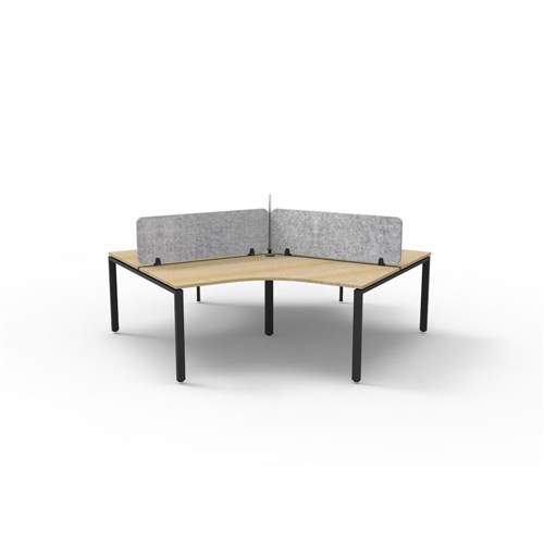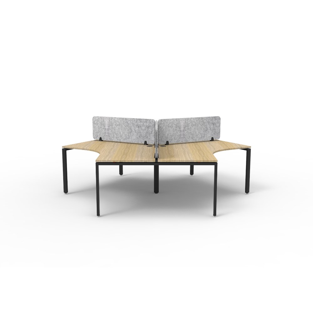 3 person 120 degree workstation with Natural Oak top and Black Satin frame, Grey Eco screen.