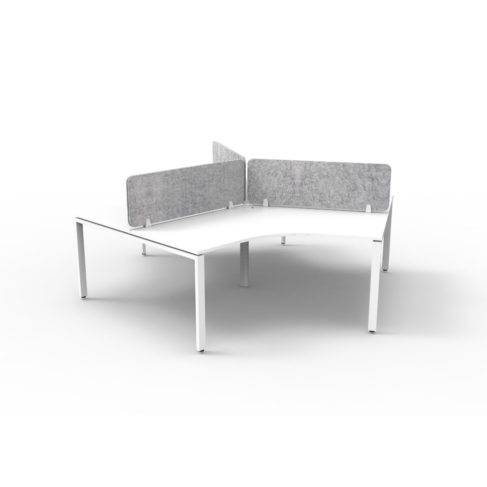 3 person 120 degree workstation with White top and White Satin frame, Grey Eco screen.
