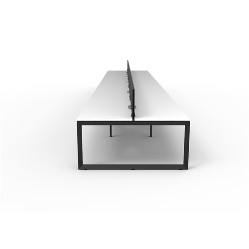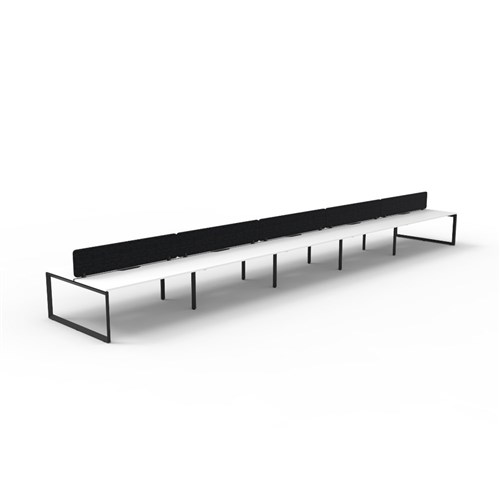 10 person double sided workstation with White top and Black Satin frame, Black Eco screen.