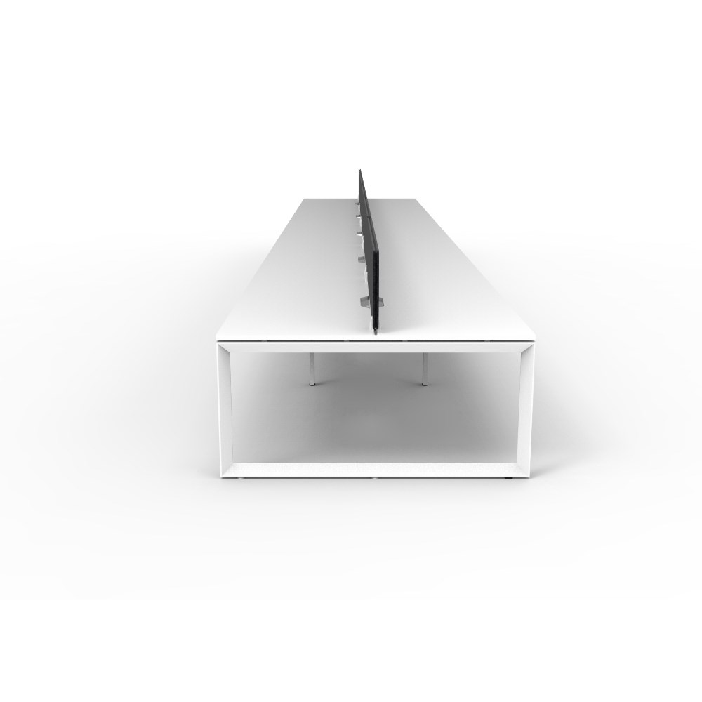 10 person double sided workstation with White top and White Satin frame, Black Eco screen.