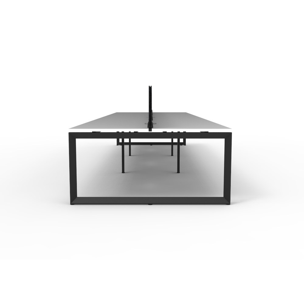 6 person double sided workstation with White top and Black Satin frame, Black Eco screen.