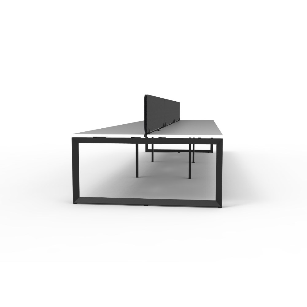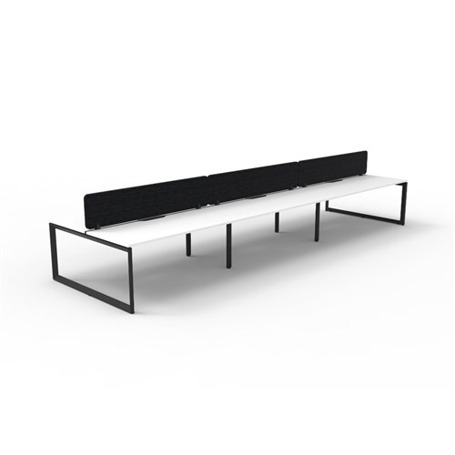 6 person double sided workstation with White top and Black Satin frame, Black Eco screen.