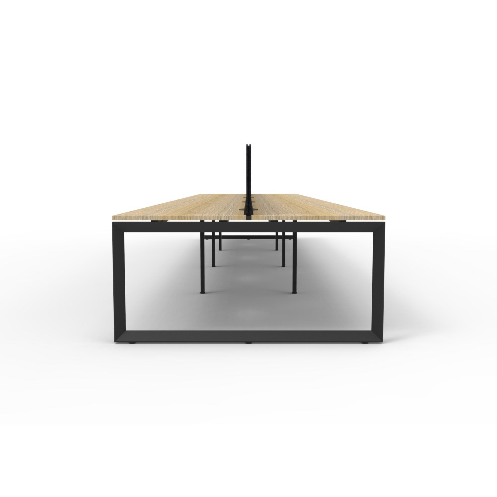 8 person double sided workstation with Natural Oak top and Black Satin frame, Black Eco screen.