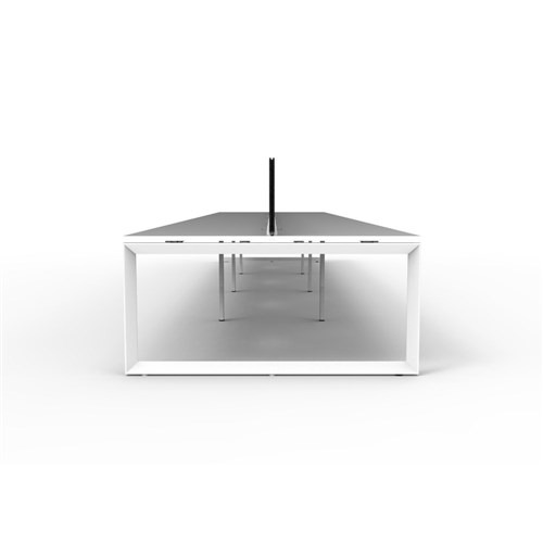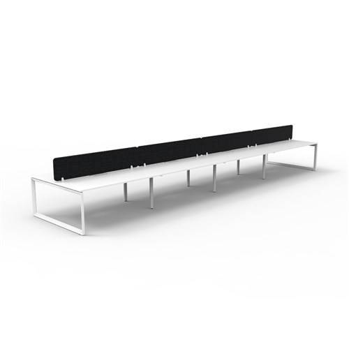 8 person double sided workstation with White top and White Satin frame, Black Eco screen.