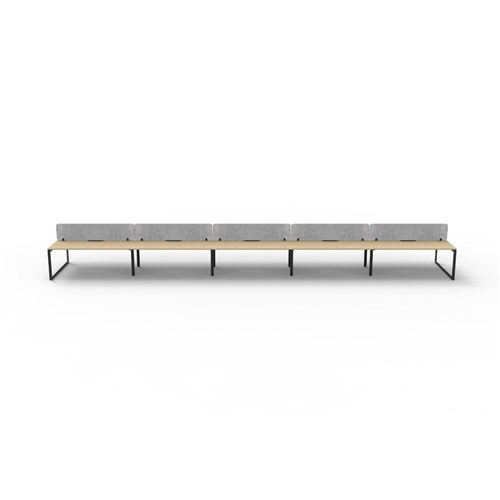 10 person double sided workstation with Natural Oak top and Black Satin frame, Grey Eco screen.