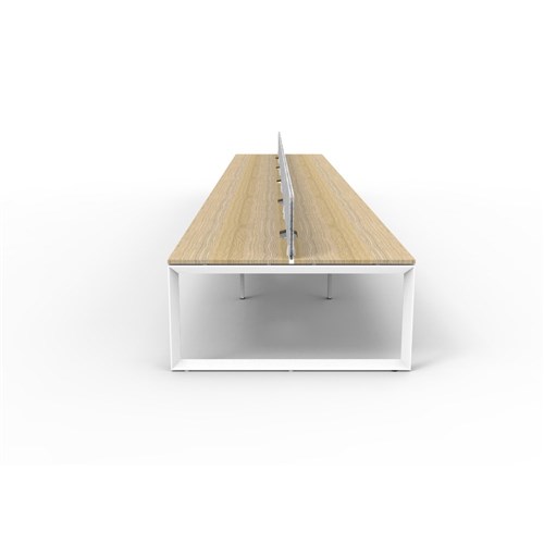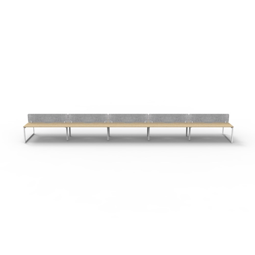 10 person double sided workstation with Natural Oak top and White Satin frame, Grey Eco screen.