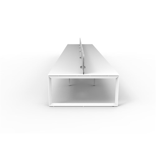 10 person double sided workstation with White top and White Satin frame, Grey Eco screen.