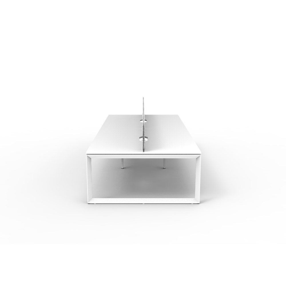 4 person double sided workstation with White top and White Satin frame, Grey Eco screen.