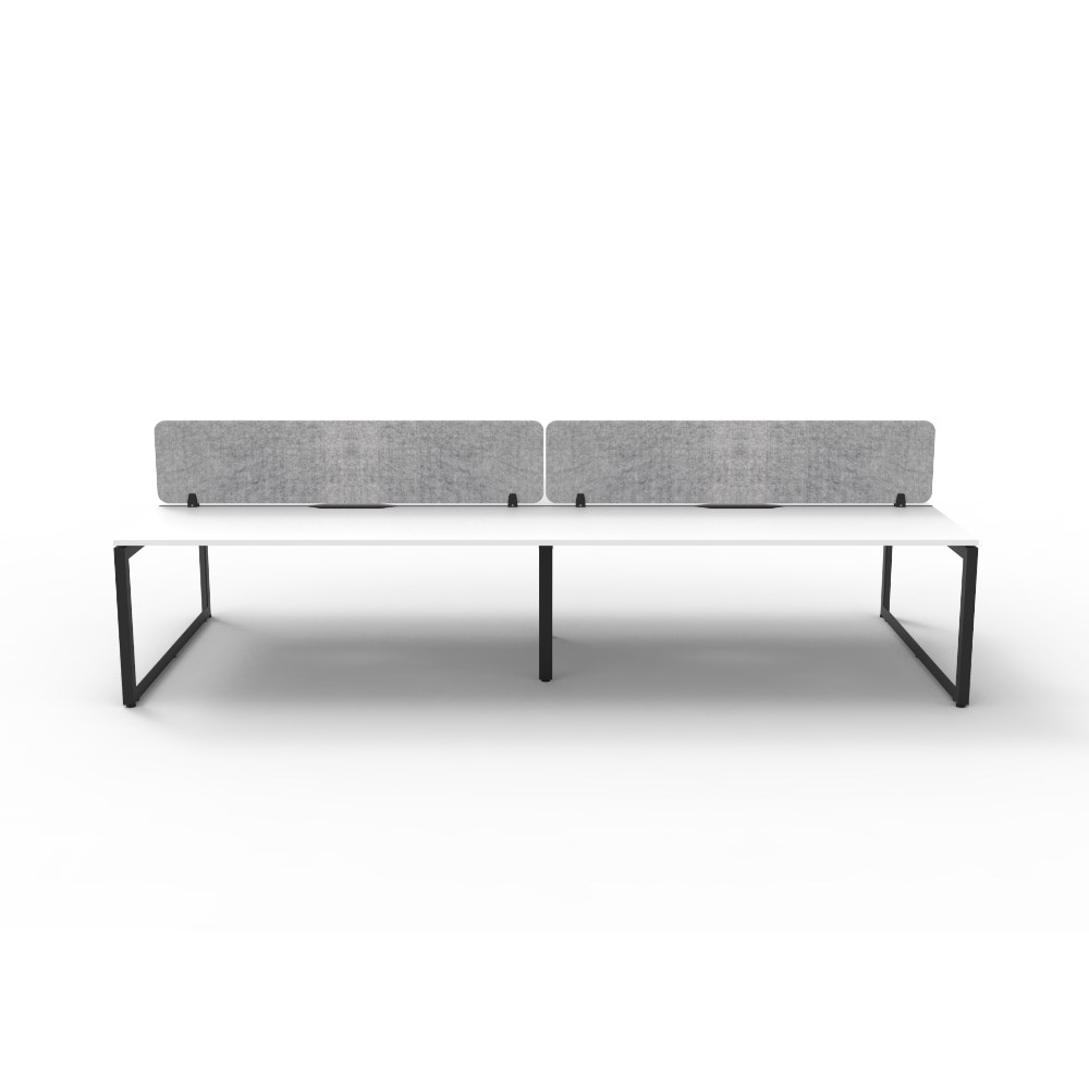 4 person double sided workstation with White top and Black Satin frame, Grey Eco screen.