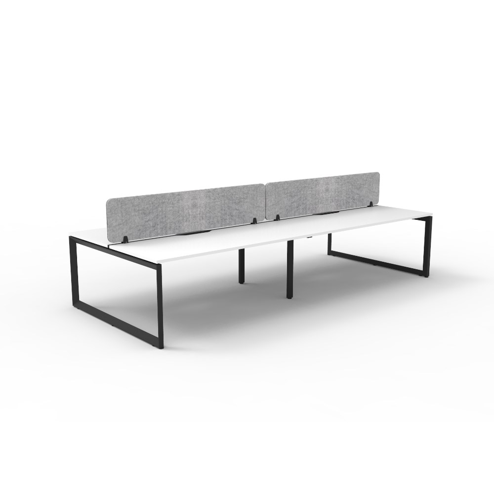 4 person double sided workstation with White top and Black Satin frame, Grey Eco screen.