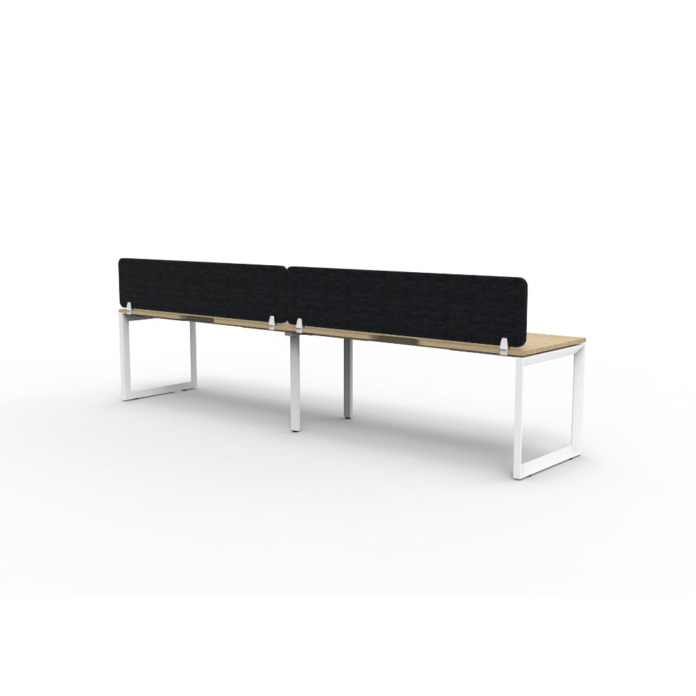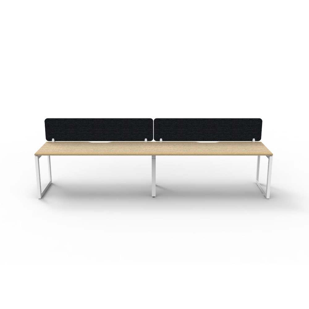 2 person single sided workstation with Natural Oak top and White Satin frame, Black Eco screen.