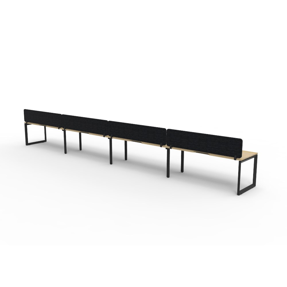 4 person single sided workstation with Natural Oak top and Black Satin frame, Black Eco screen.