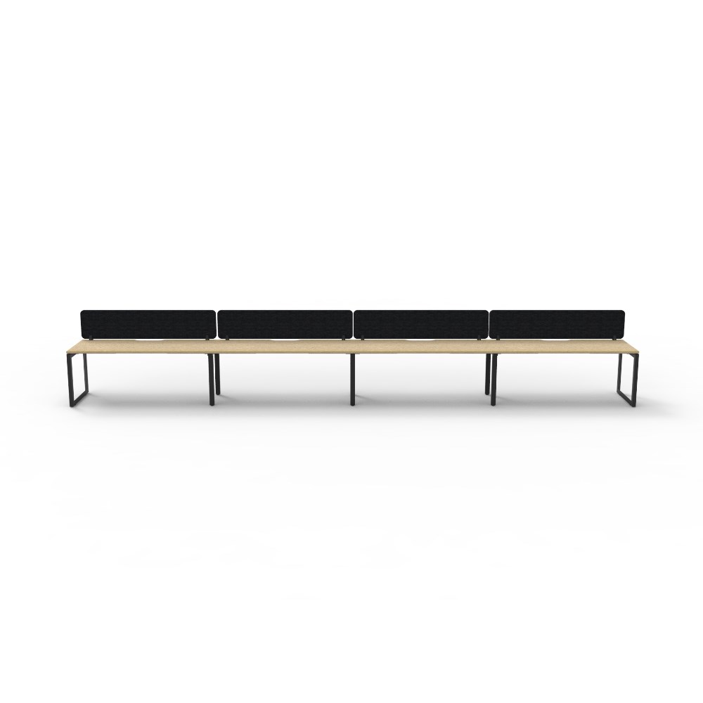 4 person single sided workstation with Natural Oak top and Black Satin frame, Black Eco screen.