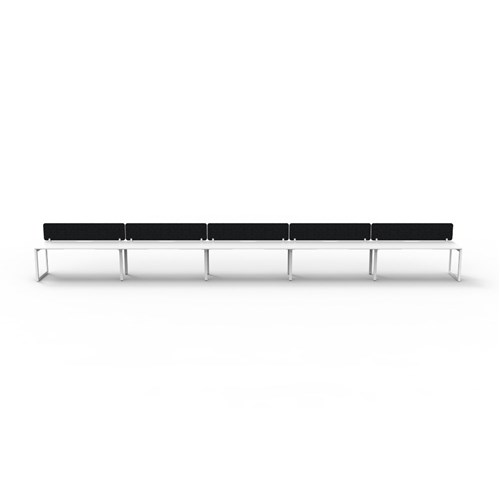 5 person single sided workstation with White top and White Satin frame, Black Eco screen.
