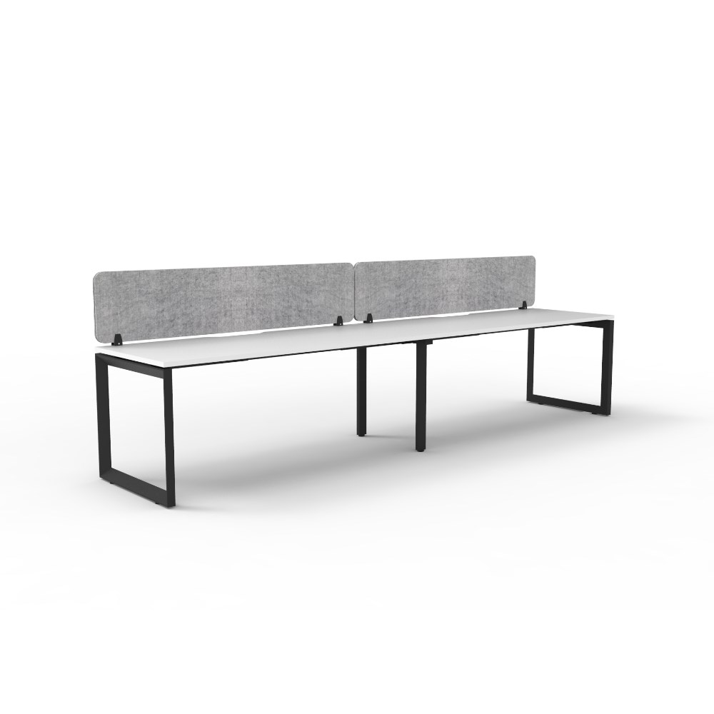 2 person single sided workstation with White top and Black Satin frame, Grey Eco screen.
