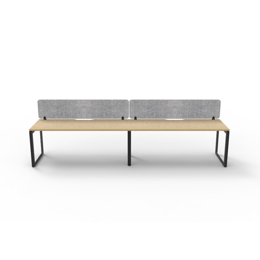 2 person single sided workstation with Natural Oak top and Black Satin frame, Grey Eco screen.