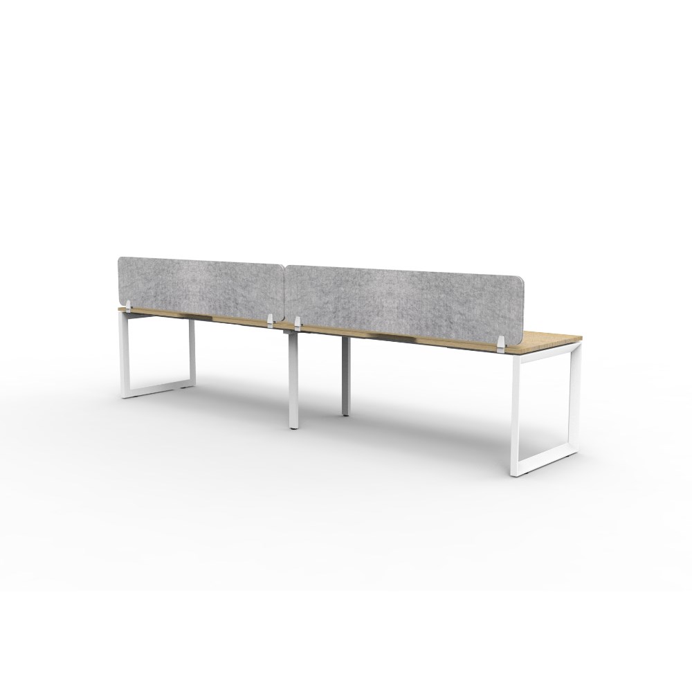 2 person single sided workstation with Natural Oak top and White Satin frame, Grey Eco screen.