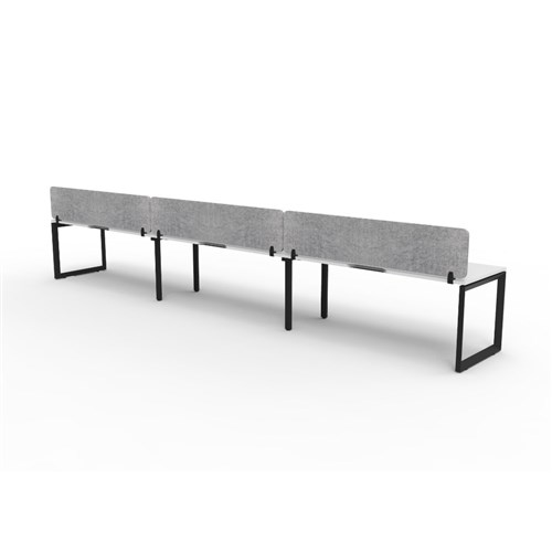 3 person single sided workstation with White top and Black Satin frame, Grey Eco screen.