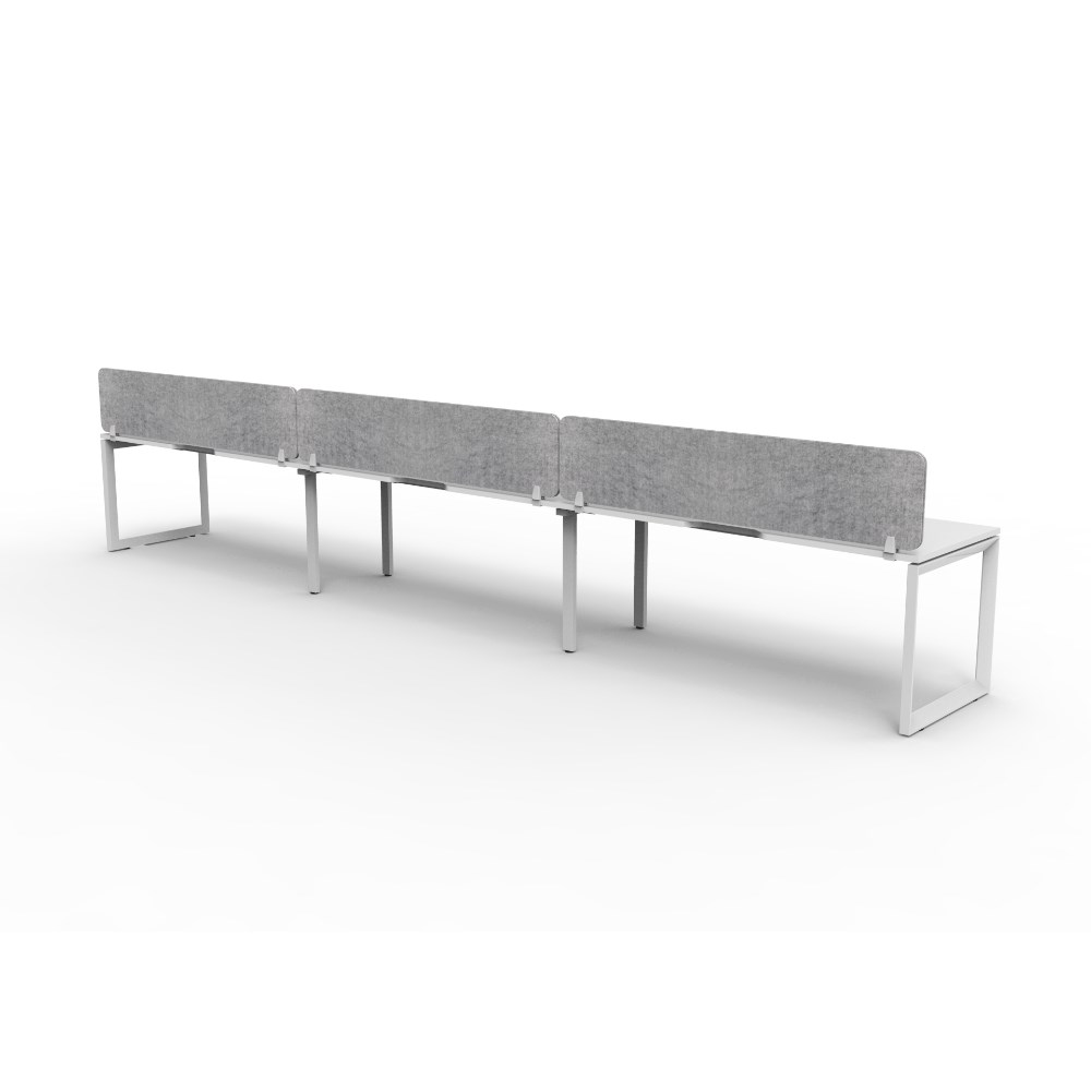 3 person single sided workstation with White top and White Satin frame, Grey Eco screen.