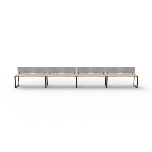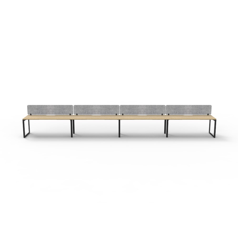 4 person single sided workstation with Natural Oak top and Black Satin frame, Grey Eco screen.