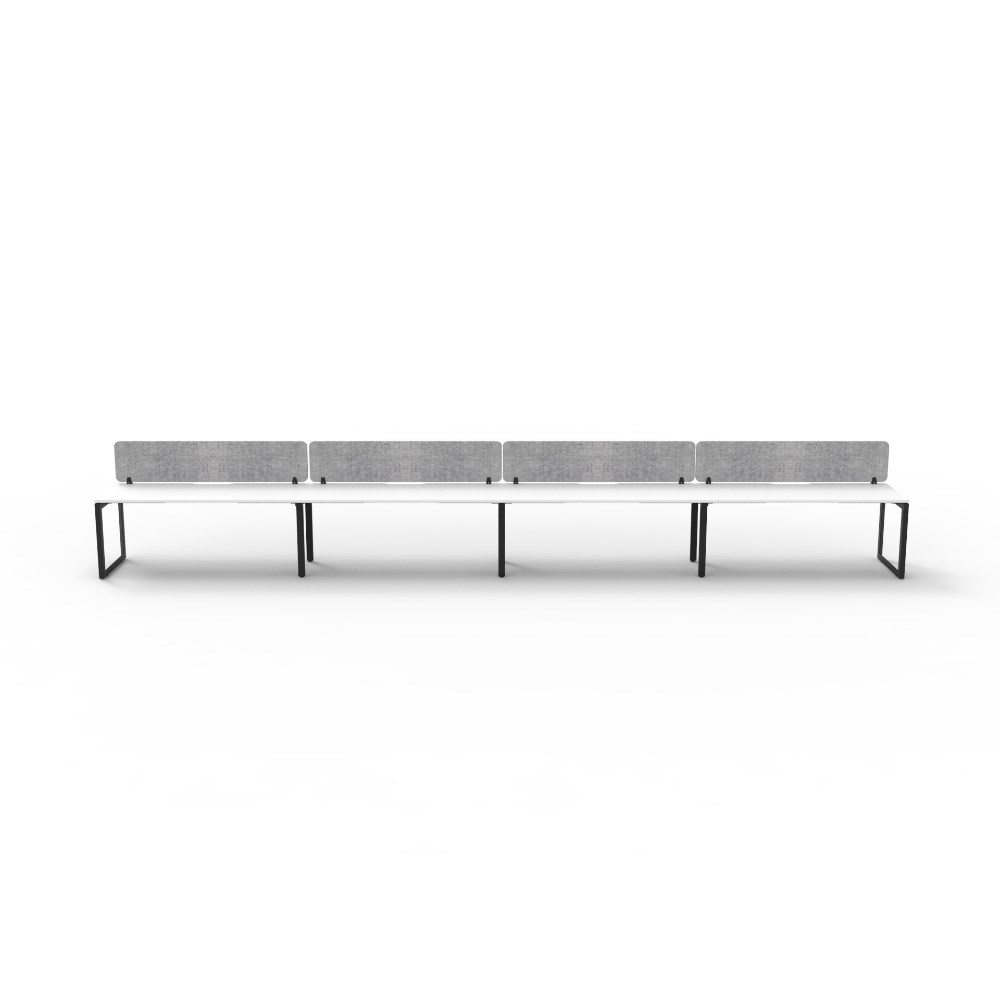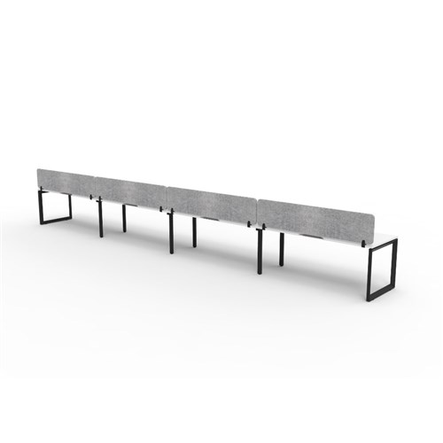4 person single sided workstation with White top and Black Satin frame, Grey Eco screen.