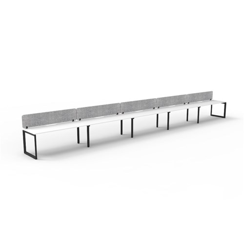 5 person single sided workstation with White top and Black Satin frame, Grey Eco screen.