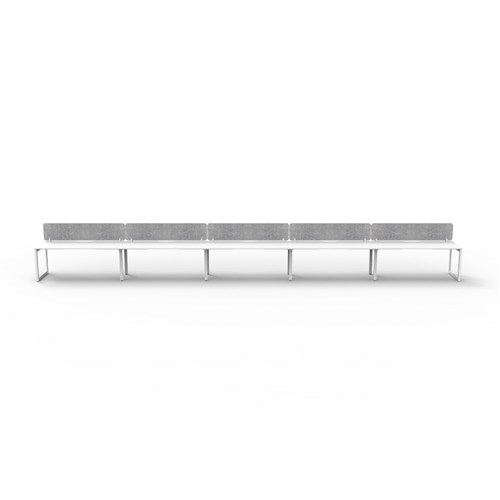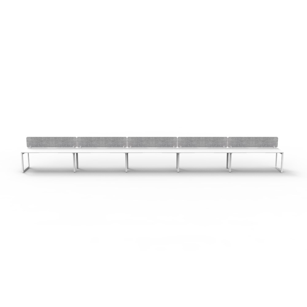 5 person single sided workstation with White top and White Satin frame, Grey Eco screen.