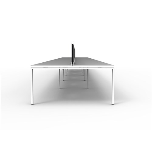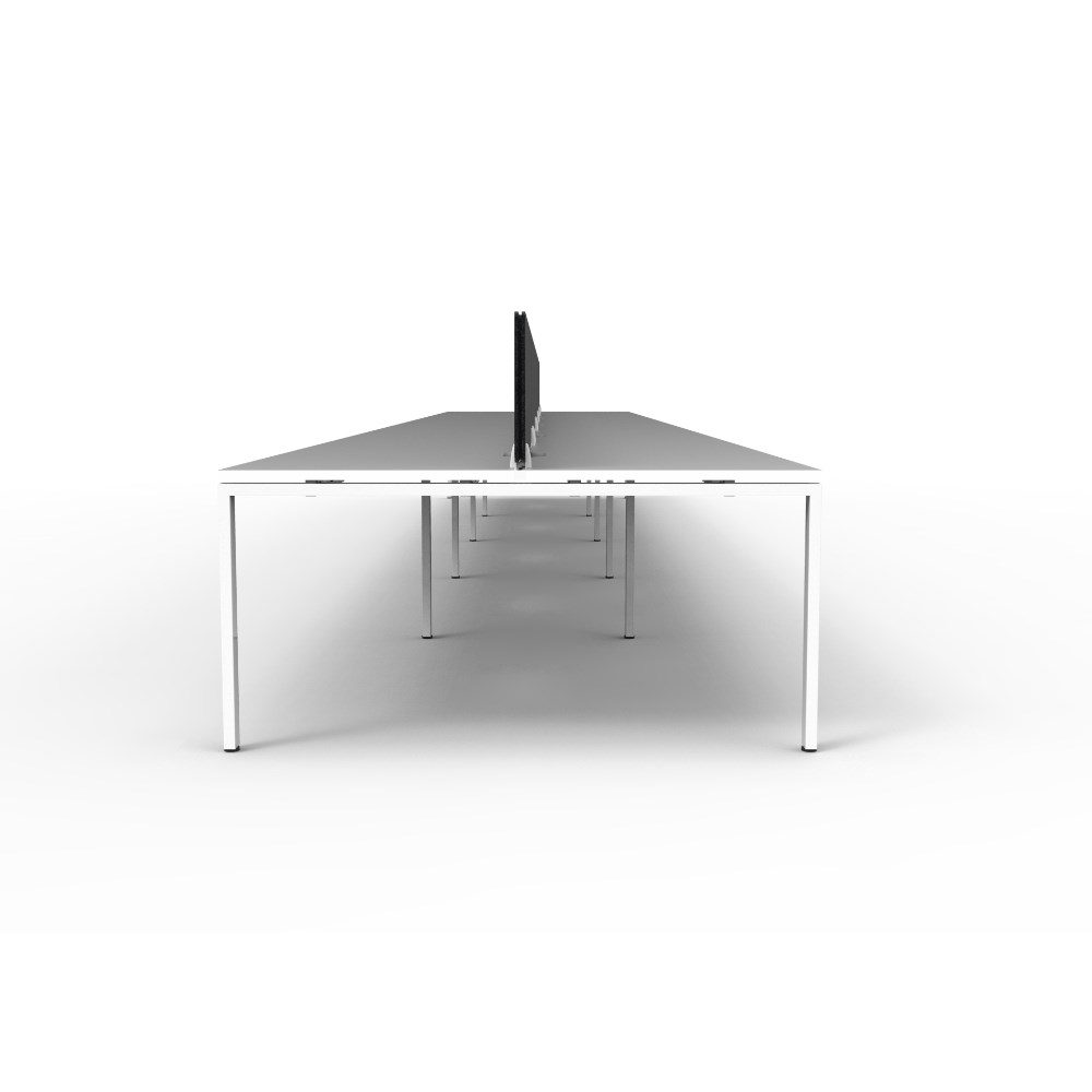 10 person double sided workstation with White top and White Satin frame, Black Eco screen.